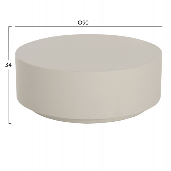 • Μοντέρνο τραπεζάκι σαλονιού εξωτερικού χώρου με στρογγυλό σχήμα και minimal αισθητική.