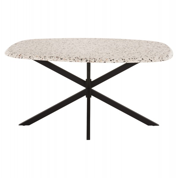 Το RODDEN είναι ένα οβάλ τραπέζι τραπεζαρίας με χαρακτηριστικά που το κατατάσσουν στα καλύτερα της κατηγορίας του. Διαθέτει φαλτσοκομμένη οβάλ επιφάνεια (επαγγελματικού επιπέδου) σε χρωματισμό TERRAΖZO (σαν μωσαϊκό) , η οποία είναι κατάλληλη για επαφή με τρόφιμα και γενικά το υλικό είναι φιλικό προς το περιβάλλον. Μπορεί να χρησιμοποιηθεί είτε σε εσωτερικούς, είτε σε εξωτερικούς χώρους. Αυτή η επιφάνεια στηρίζεται σε μια μεταλλική βάση/πόδια σε ΜΑΥΡΟ χρώμα σε διάταξη διπλού χιαστί και με ρεγουλατόρους στο κάτω μέρος.