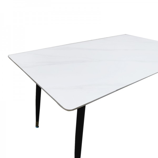 Κομψό Τραπέζι με εφε Επιφάνειας Μαρμάρου και Μεταλλικά ΠόδιαΑναβαθμίστε τον χώρο σας με αυτό το μοντέρνο και λειτουργικό τραπέζι τραπεζαρίας Pembe. Η εντυπωσιακή επιφάνεια σε εφε λευκού μαρμάρου προσδίδει μια αίσθηση πολυτέλειας και φινέτσας, ενώ τα στιλάτα, κωνικά μαύρα μεταλλικά πόδια εξασφαλίζουν σταθερότητα και ανθεκτικότητα.Σχεδιασμένο για να ενσωματώνεται αρμονικά σε κάθε σύγχρονο εσωτερικό χώρο, αυτό το τραπέζι είναι ιδανικό για καθημερινά γεύματα, φιλοξενία φίλων ή ακόμα και ως επιφάνεια εργασίας.Ο συνδυασμός υλικών και η λιτή, καθαρή σχεδίαση το καθιστούν μια διαχρονική επιλογή που θα αναδείξει την αισθητική του χώρου σας.Τεχνικά χαρακτηριστικά :