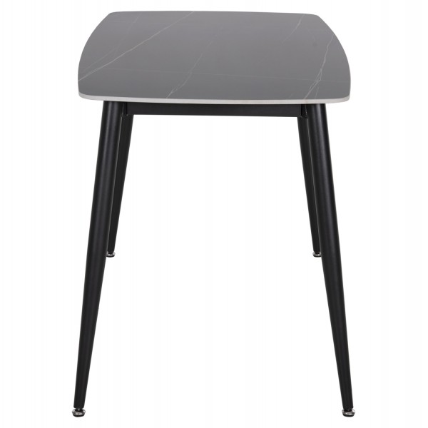 Το RAVEN είναι ένα τραπέζι τραπεζαρίας σε ορθογώνιο σχήμα με στρογγυλεμένες γωνίες. Η επιφάνεια είναι κεραμική σε χρωματισμό ΜΑΥΡΟΥ ΜΑΡΜΑΡΟΥ, ενώ τα πόδια είναι μεταλλικά σε ΜΑΥΡΟ χρώμα με ρεγουλατόρους στο κάτω μέρος, δημιουργώντας μια εντυπωσιακή μονοχρωμία. Το συγκεκριμένο τραπέζι θα αποτελέσει σημείο αναφοράς σε οποιοδήποτε χώρο τραπεζαρίας ή εστίασης κι αν τοποθετηθεί.