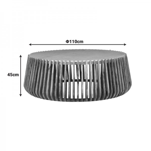 Αναβαθμίστε την αισθητική του σαλονιού σας με αυτό το εντυπωσιακό στρογγυλό τραπεζάκι σαλονιού. Η κομψή του σχεδίαση συνδυάζει την πολυτελή αίσθηση της λευκής μαρμάρινης επιφάνειας με τη ζεστή, φυσική υφή της ξύλινης βάσης.Τεχνικά χαρακτηριστικά: