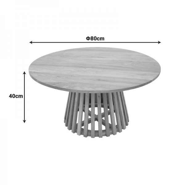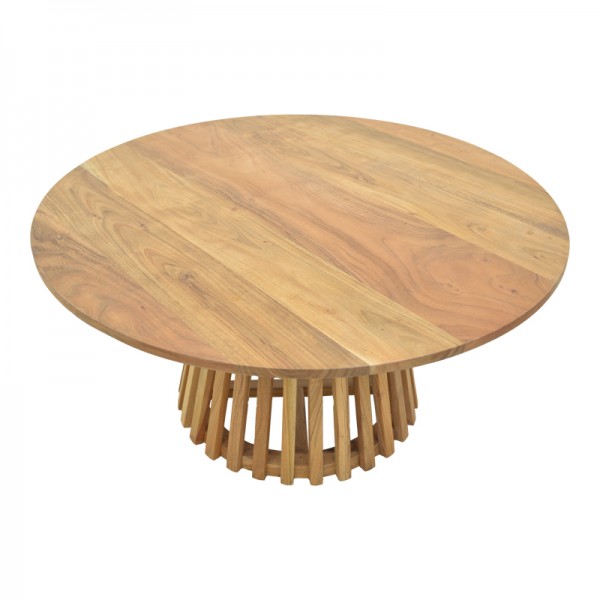 Μοναδική Βάση "Ακτίνων": Το πραγματικό highlight αυτού του τραπεζιού είναι η κωνική του βάση, σχηματισμένη από κάθετες ξύλινες "πλευρές" ή "ακτίνες". Αυτό το ιδιαίτερο μοτίβο δημιουργεί ένα παιχνίδι φωτός και σκιάς, προσθέτοντας βάθος, υφή και μια μοντέρνα, αρχιτεκτονική πινελιά που το κάνει να ξεχωρίζει από οτιδήποτε άλλο.