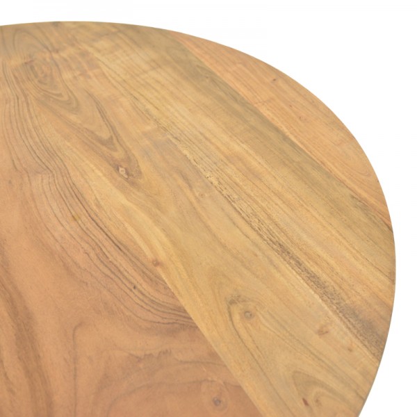 Φυσική Ομορφιά & Ζεστασιά: Η στρογγυλή επιφάνεια από μασίφ ξύλο, με τους ορατούς κόκκους και τις πλούσιες αποχρώσεις της, προσδίδει μια αίσθηση γαλήνης και ζεστασιάς. Είναι το τέλειο φόντο για τα αγαπημένα σας αντικείμενα ή για να απολαύσετε τις καθημερινές σας στιγμές.