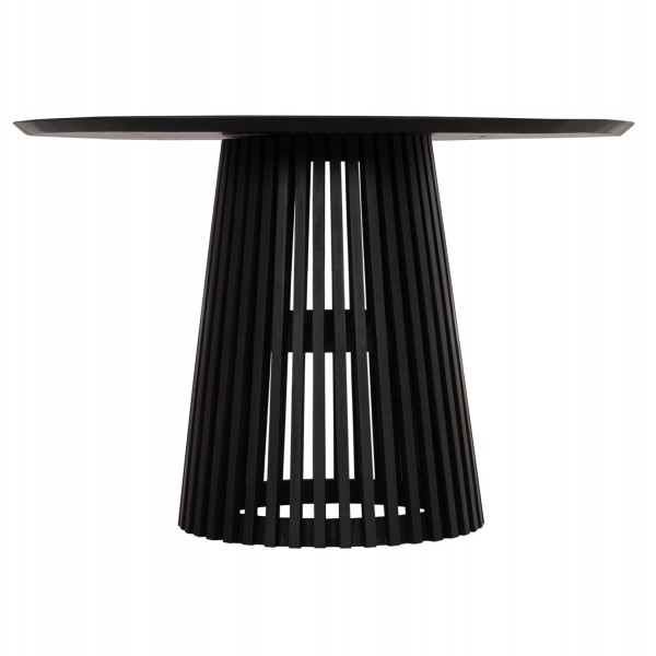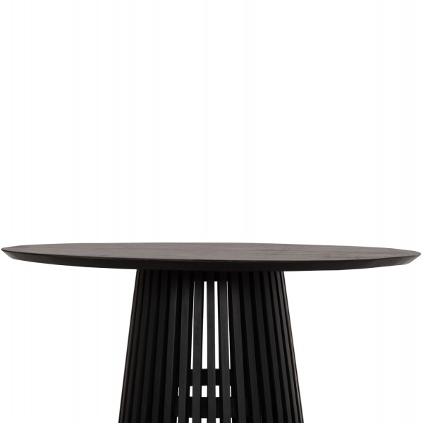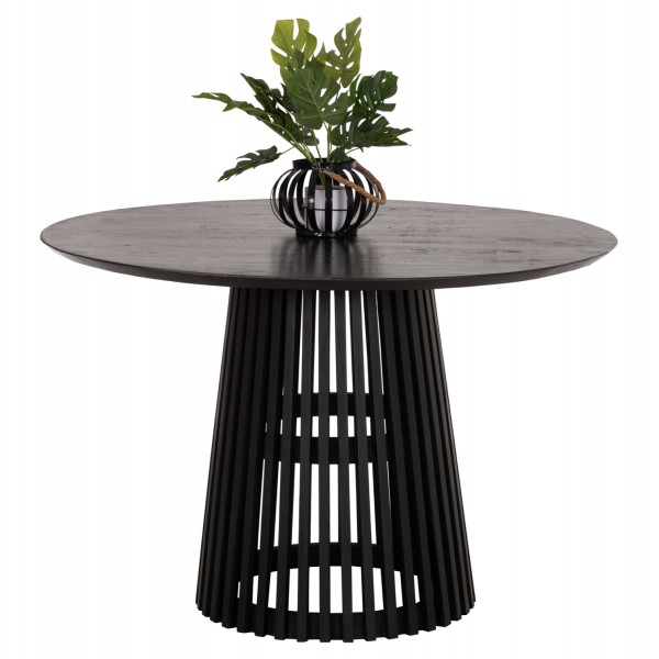 Το FRANTZ είναι ένα στρογγυλό τραπέζι για την τραπεζαρία, με ικανοποιητικές διαστάσεις σε ΜΑΥΡΟ χρώμα. Η φαλτσοκομμένη επιφάνεια στηρίζεται σε μια ξύλινη κατασκευή στο κέντρο με πολλές δοκούς σε κυκλική διάταξη που ενώνονται μεταξύ τους με δακτυλίους στην εσωτερική πλευρά. Αυτό το τραπέζι θα αναβαθμίσει αισθητικά την τραπεζαρία σας ενώ μπορεί να ταιριάξει με πολλά διαφορετικά στυλ και χρώματα στον τριγύρω χώρο, όπως και με διαφορετικά στυλ καρέκλας.