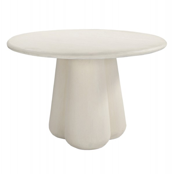 • Όμορφο τραπέζι τραπεζαρίας εξωτερικού χώρου με στρογγυλή επιφάνεια και σύγχρονο αρχιτεκτονικό χαρακτήρα με κωνική βάση με καμπύλες.