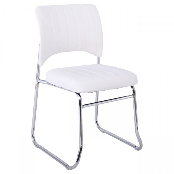VENUS Καρέκλα Γραφείου Επισκέπτη, Στοιβαζόμενη Μέταλλο Χρώμιο, Pu Άσπρο