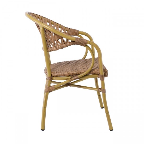 Rattan Πολυθρόνα Dining Αλουμίνιο Φυσικό, Wicker Φυσικό, Στοιβαζόμενη