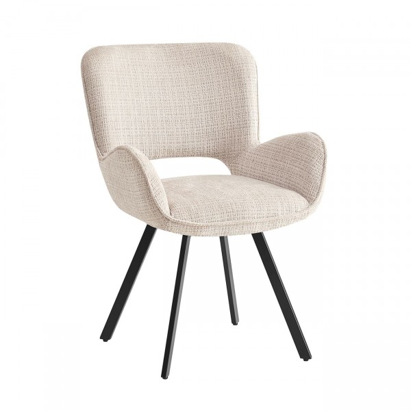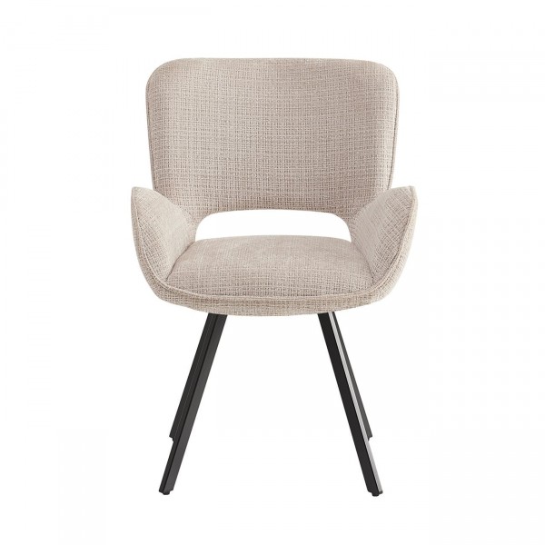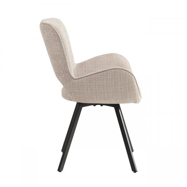 VETA Πολυθρόνα Περιστρεφόμενη, Μέταλλο Βαφή Μαύρο, Ύφασμα Μπεζ SET 2τμχ.