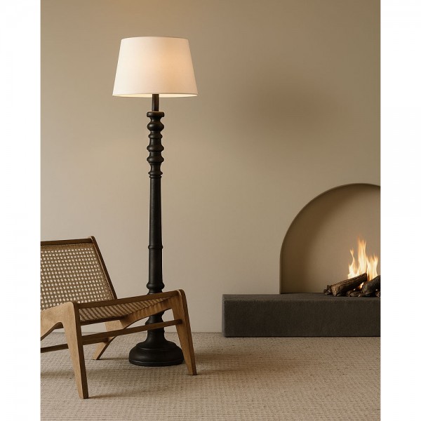 VICTORIEN ΦΩΤΙΣΤΙΚΟ ΕΠΙΔΑΠΕΔΙΟ 25x25x163cm ΞΥΛΟ ΜΑΥΡΟ ΥΦΑΣΜΑ ΛΕΥΚΟ
