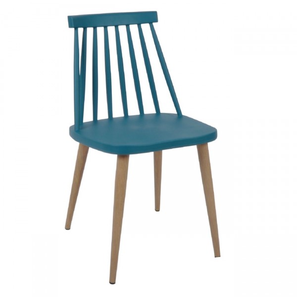Καρέκλα Τραπεζαρίας Κουζίνας, Μέταλλο Βαφή Φυσικό PP Μπλε σετ 4 τεμ