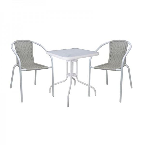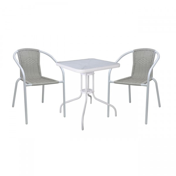 BALENO-W Set Κήπου - Βεράντας: Τραπέζι + 2 Πολυθρόνες Μέταλλο Άσπρο, Wicker Beige