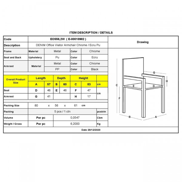 DENIM Πολυθρόνα Γραφείου Επισκέπτη Χρώμιο Pu Άσπρο SET 5τμχ c539417
