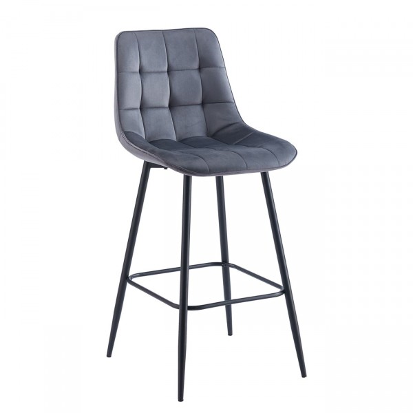 MYRIAM Σκαμπό BAR, Μέταλλο Βαφή Μαύρο, Ύφασμα Velure Σκούρο Γκρι SET 2τμχ.