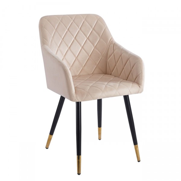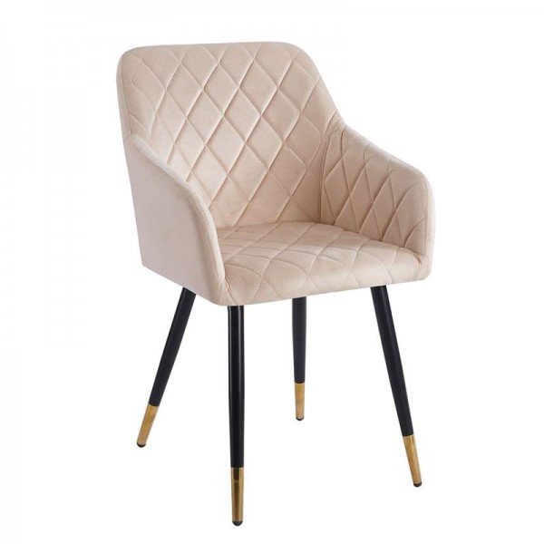 RENA Πολυθρόνα Μέταλλο Βαφή Μαύρο, Ύφασμα Velure, Απόχρωση Μπεζ SET 2τμχ.