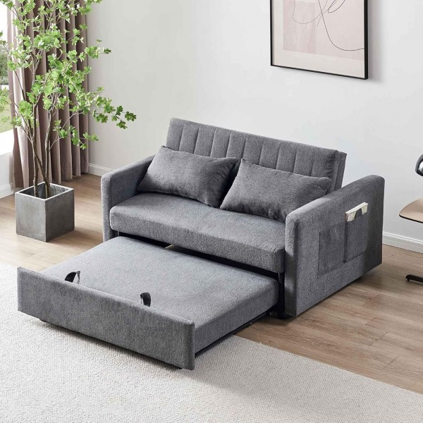 TEMPO-W Καναπές - Κρεβάτι, Με ανάκλιση πλάτης, Ύφασμα Γκρι
